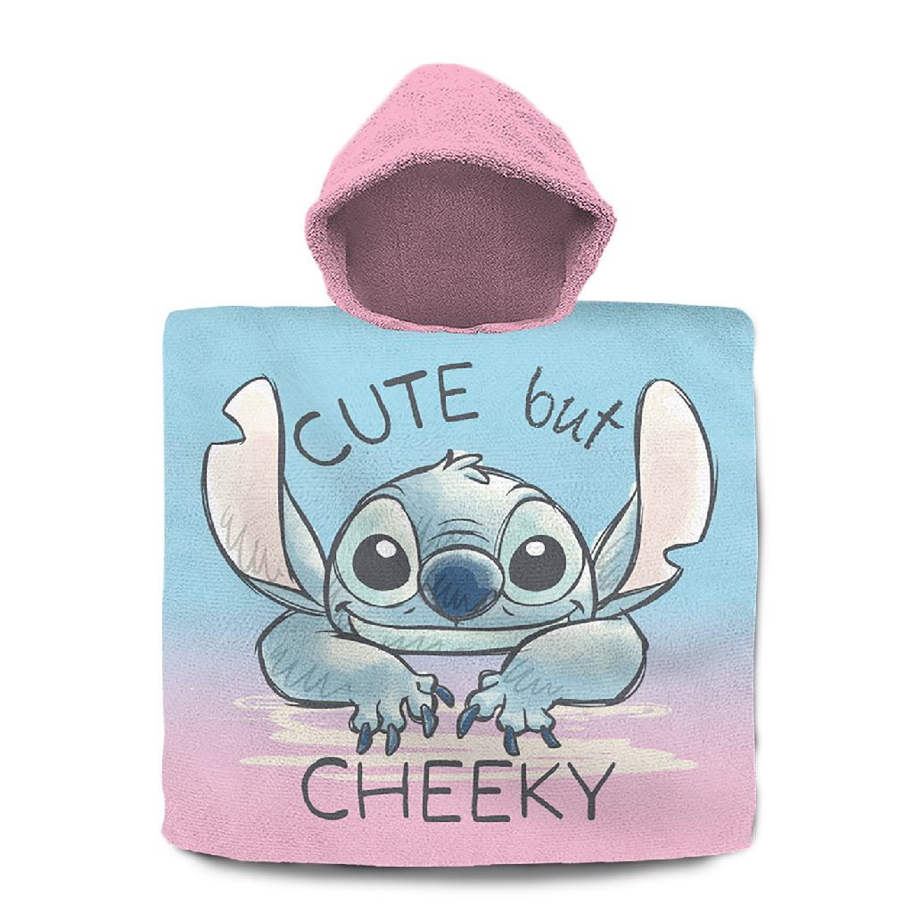 Disney Stitch roze-blauwe badponcho, met een gave print van Stitch. Handig na de zwemles, maar ook fijn om te gebruiken na een dagje strand. Je bent hiermee namelijk snel droog, en zo blijf je lekker warm. Gemaakt van 100 procent katoen. Afmetingen: 60 x 120 cm.