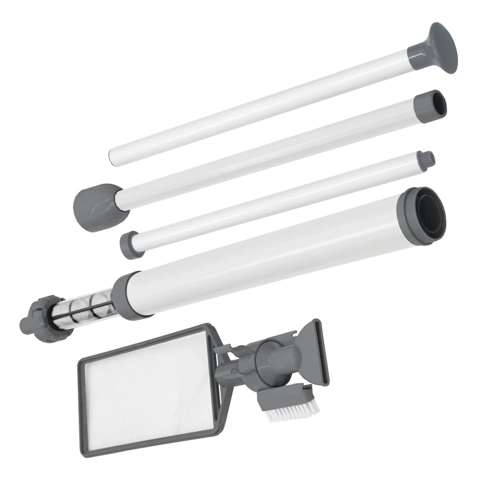 Eenvoudige doch zeer handige hand-vacuu?mzuiger voor het reinigen van spa’s, whirlpools en kleine kinderbaden. Voorzien van 3 hulpstukken, een brede zuigmond, een zuigmond met borstel en een schepnet, zodat u kunt kiezen op welke manier u wilt reinigen.