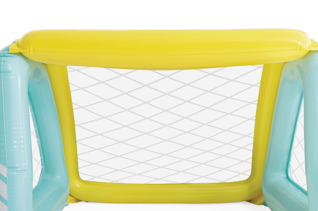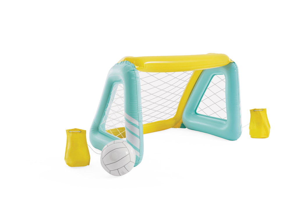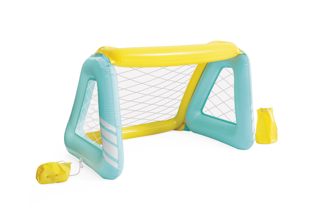 Zwembad polo set van Intex om een spelletje water polo te kunnen spelen in het water. De set bevat een opblaasbare goal met net, en een opblaasbare bal. Met gewichten om de goals op zijn plaats te houden. Natuurlijk ookgeschikt voor een potje voetbal op het gras! Afmetingen : 140 x 89 x 81 cm. Inclusief reparatiesetje.