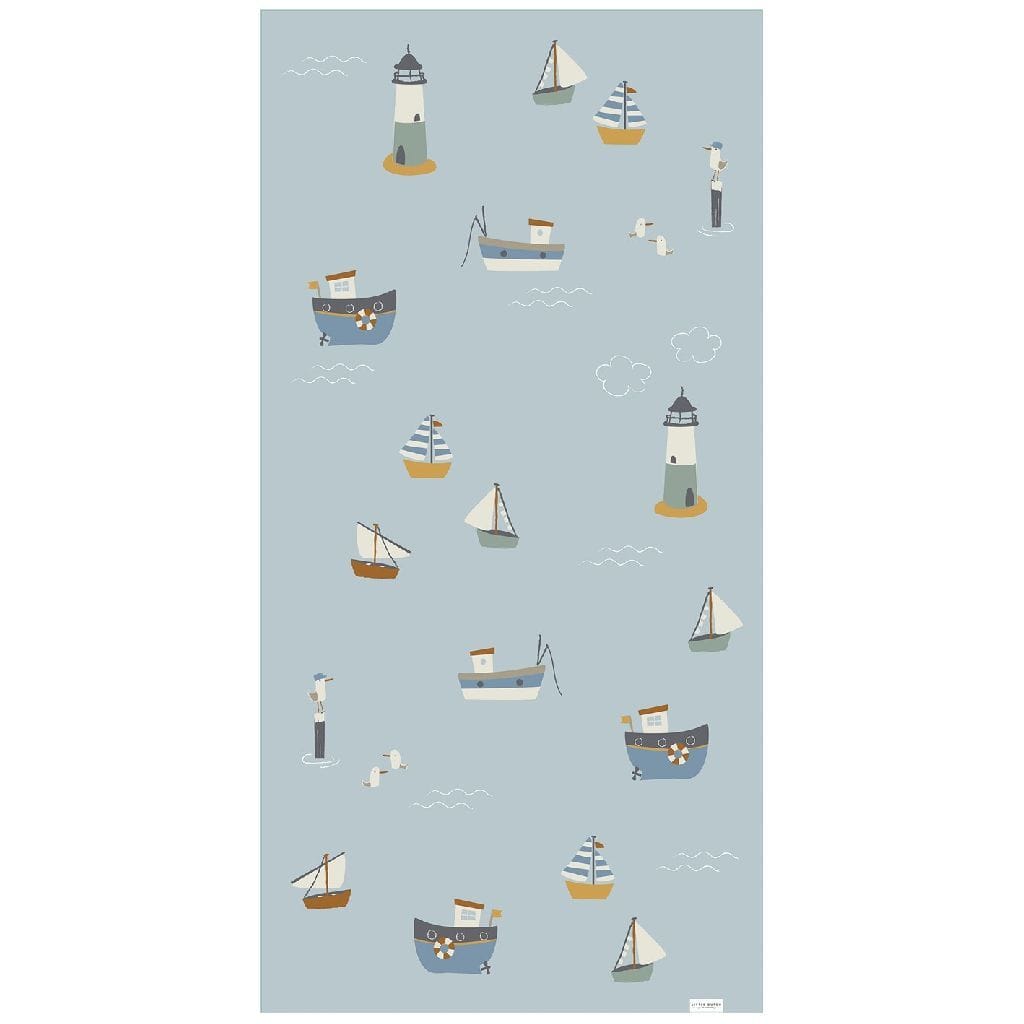 Little Dutch Sailors Bay strandlaken, bedruk met een patroon uit de serie Sailors Bay. Afmeting strandlaken: 60 x 120 cm, 100% katoen. Kleur: lichtblauw.
